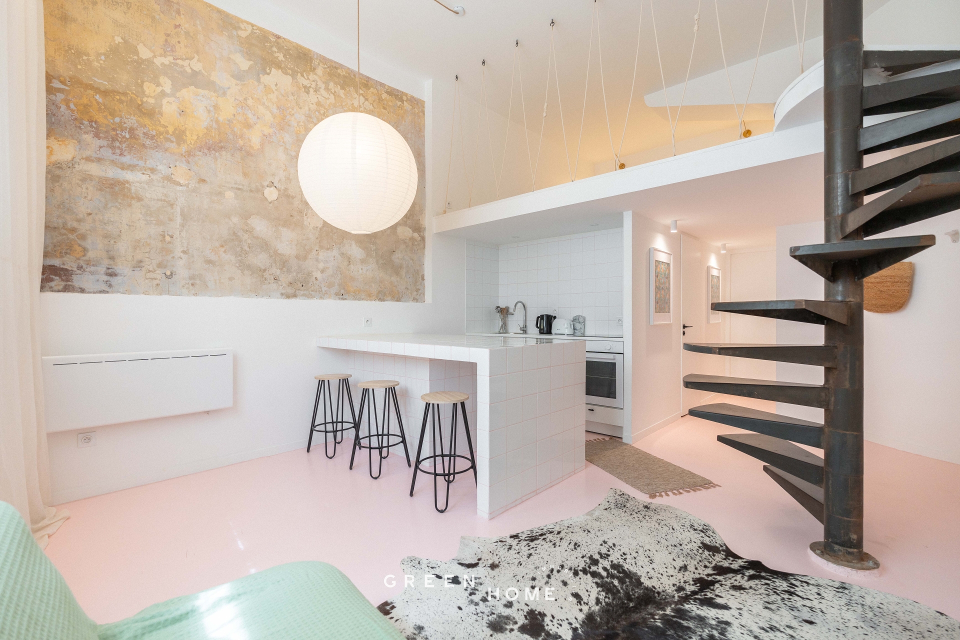 Un ancien atelier accueille cet espace de vie alliant modernité et caractère. Soigneusement rénové pour offrir un cadre unique et contemporain, ce lieu se distingue par ses matériaux de qualité et son design audacieux. Son ambiance douce et élégante est mise en valeur par une palette de tons rosés sublimée par un mur brut et son escalier en métal confèrent un caractère affirmé à l'appartement. L'espace nuit paisible côté cour ainsi qu'une grande mezzanine complète cette description.