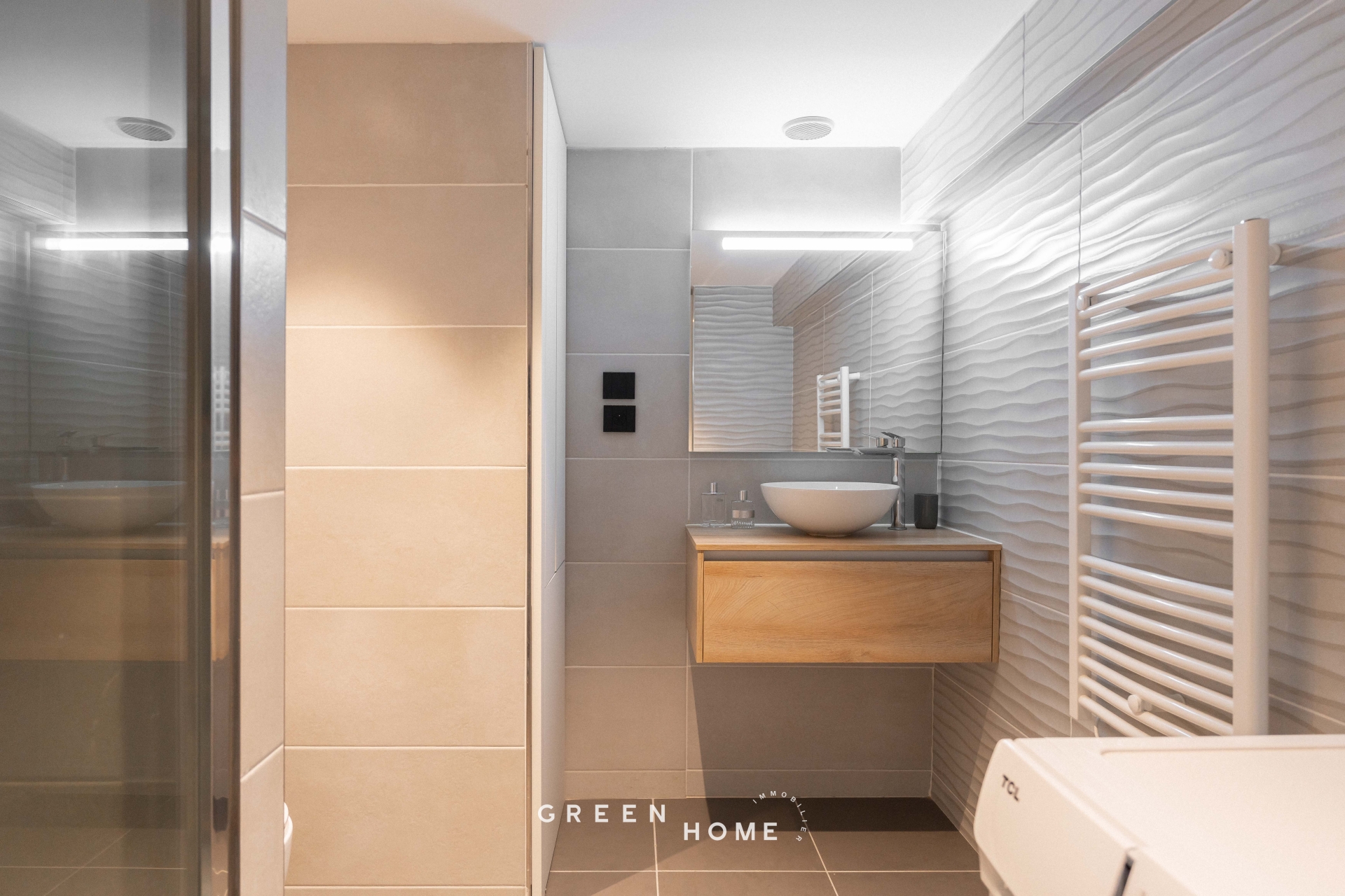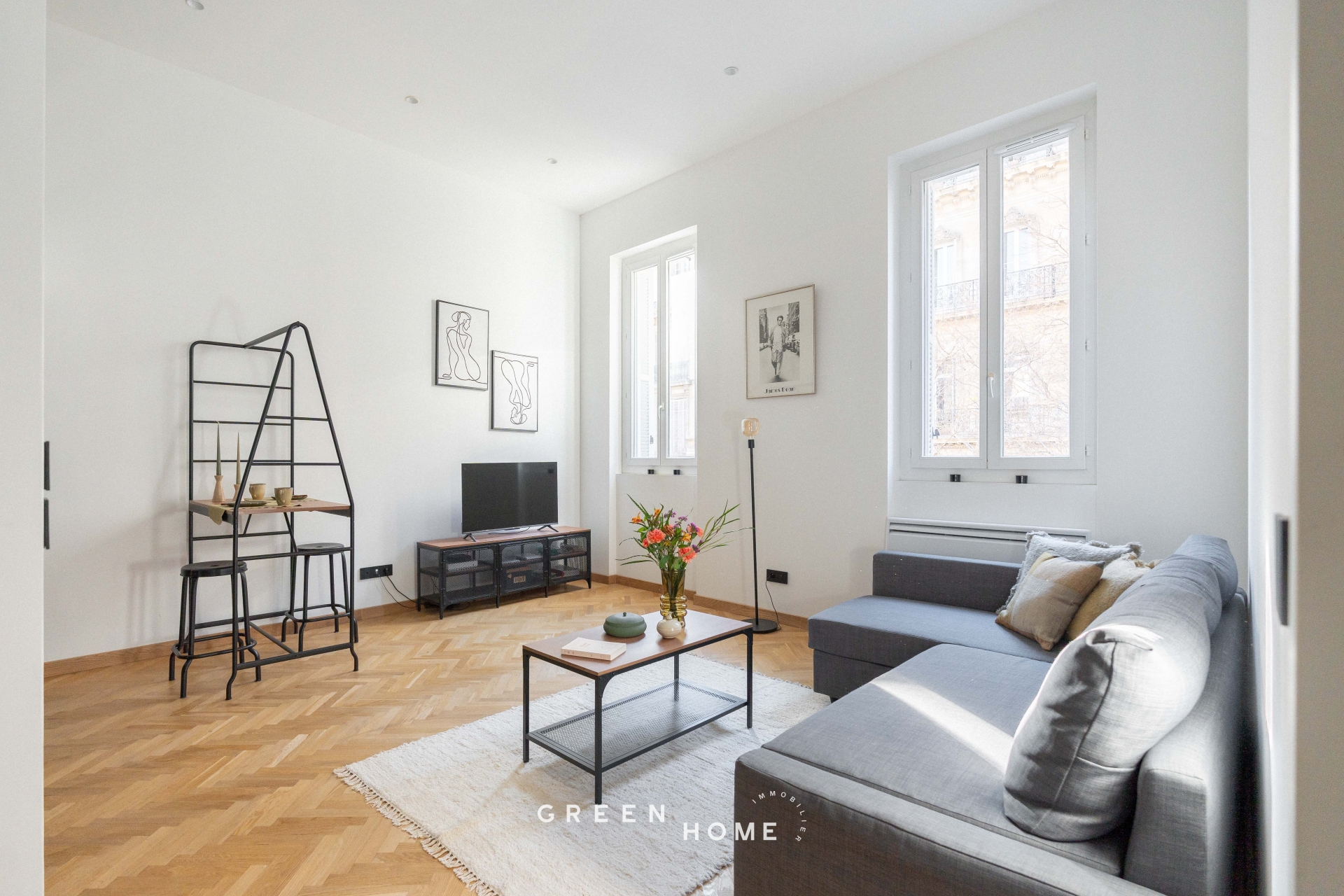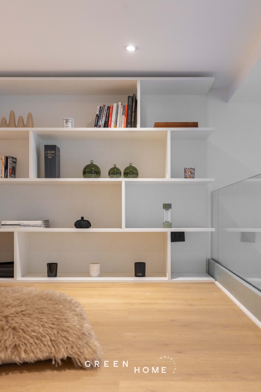 Un immeuble Marseillais bourgeois du prisé boulevard Notre Dame situé a mi chemin entre le quartier Vauban et Palais de Justice accueille cet espace offrant un cadre de vie moderne et élégant. Le séjour, paré d’un parquet chevron en chêne massif, dégage une atmosphère chaleureuse et accueillante. Il est doté d’une belle hauteur sous plafond et s’ouvre sur une cuisine moderne et entièrement équipée, créant ainsi un espace de vie convivial et pratique. La mezzanine, avec sa bibliothèque sur mesure et son garde-corps en verre, apporte une touche de modernité et offre diverses possibilités d’aménagement, telles qu’un coin détente ou un espace bureau. La chambre, à la fois confortable et bien agencée, bénéficie d’un placard sur mesure, assurant de nombreux rangements. La salle d’eau, élégante et contemporaine, est équipée de rangements intégrés, garantissant une fonctionnalité optimale.