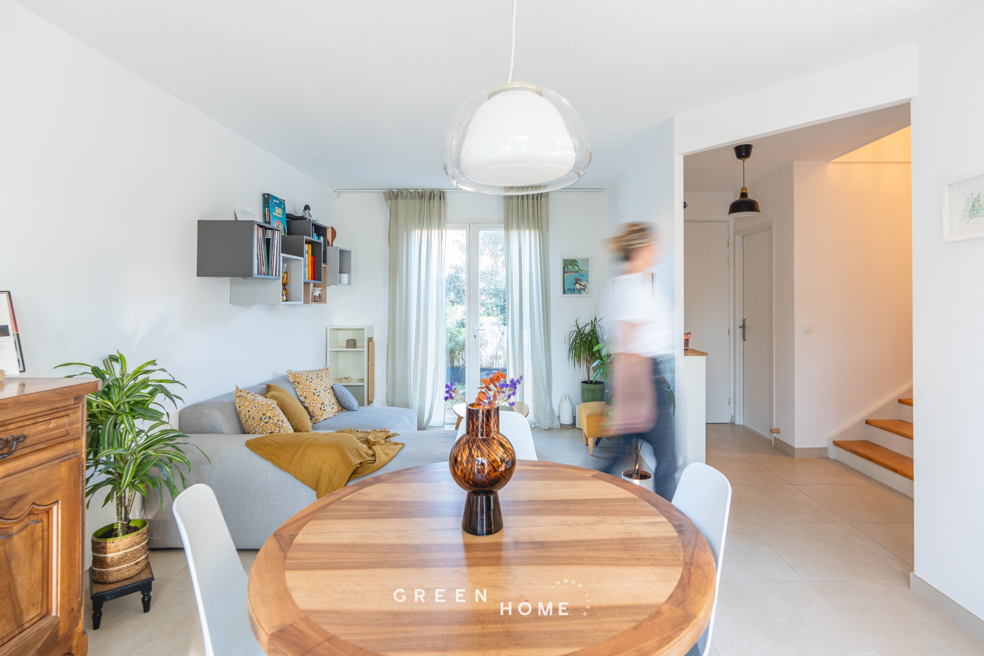 À l’abri de l’agitation, cet écrin de 70 m² séduit par son atmosphère paisible et son cadre verdoyant. Récemment rénovée avec des matériaux de qualité, elle offre un intérieur harmonieux où le confort et l’élégance se mêlent avec subtilité. L’espace de vie traversant et lumineux s’ouvre sur une terrasse bois. Dans le prolongement, un charmant jardin offre une vue dégagée sur la nature environnante. À l'étage, le coin nuit se pare de deux chambres avec facilités de rangement, ainsi que d'une salle d’eau avec douche à l'italienne, raffinée et fonctionnelle. Un garage attenant de 14 m² ainsi que deux places stationnement privatives sont autant d'attraits supplémentaires.