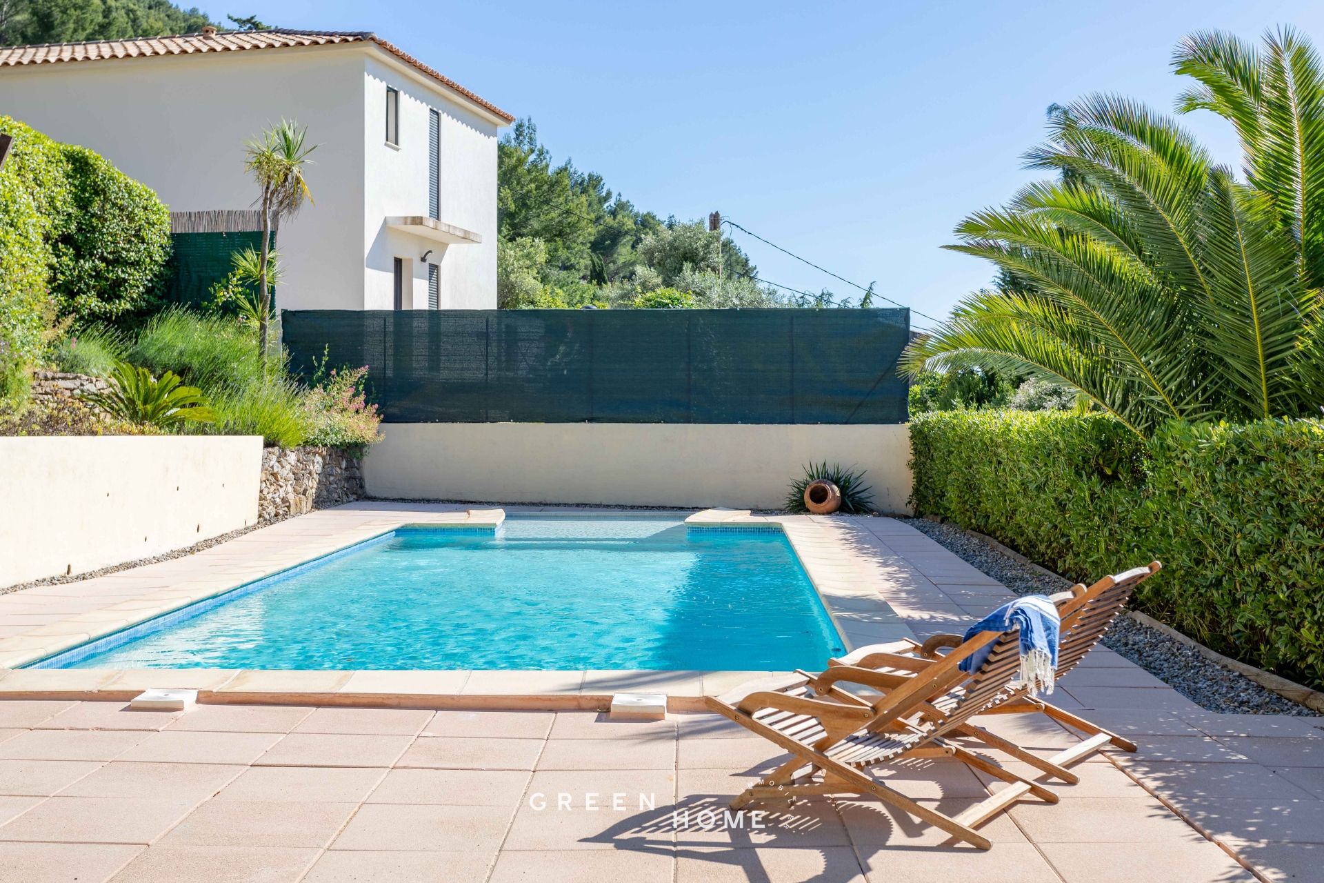 Nichée dans le quartier des Camegiers des hauteurs de Ceyreste, cette maison à l'architecture provençale offre un espace de vie en toute quiétude. Dès l'entrée se découvre une cheminée et de beaux volumes sublimés par des poutres et une véranda tournés vers un panorama époustouflant. Le coté nuit s'étend sur 2 niveaux avec rangements. A l'abri des regards, la chambre parentale donne accès à une charmante terrasse tropézienne. Le jardin en restanque de 1300 m2 offre plusieurs espaces : coin repas avec barbecue sous les pins parasols, espaces bucoliques autour de la maison et un coin détente terrassé autour de la piscine. A seulement 10 minutes du centre ville de la Ciotat, cette propriété à l'ambiance douce et familiale est une invitation à la sérenité.