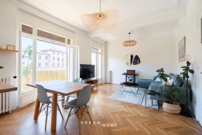 À quelques encablures de l’emblématique Place Castellane, siège cet espace chaleureux. Situé au 2ème étage avec ascenseur d’un petit immeuble marseillais, ce lieu bénéficie d’une entrée desservant 2 chambres sur rue, équipée du double vitrage et de la climatisation. A rebours, une agréable pièce de vie lumineuse avec un parquet chevron permet l’accès à un extérieur de 8m2 exposé sud au calme, sans vis-à-vis. La cuisine équipée moderne s’ouvre sur la pièce de vie et l’extérieur, et permet d’avoir un véritable espace de réception. Une salle d’eau, un wc séparé et une cave complètent la description de ce bien en excellent état. Possibilité de louer un garage fermé (120€/mois). Confort & charme de l’ancien sont les atouts de ce bien au cadre précieux, dont la situation centrale est idéale pour une vie citadine accomplie.