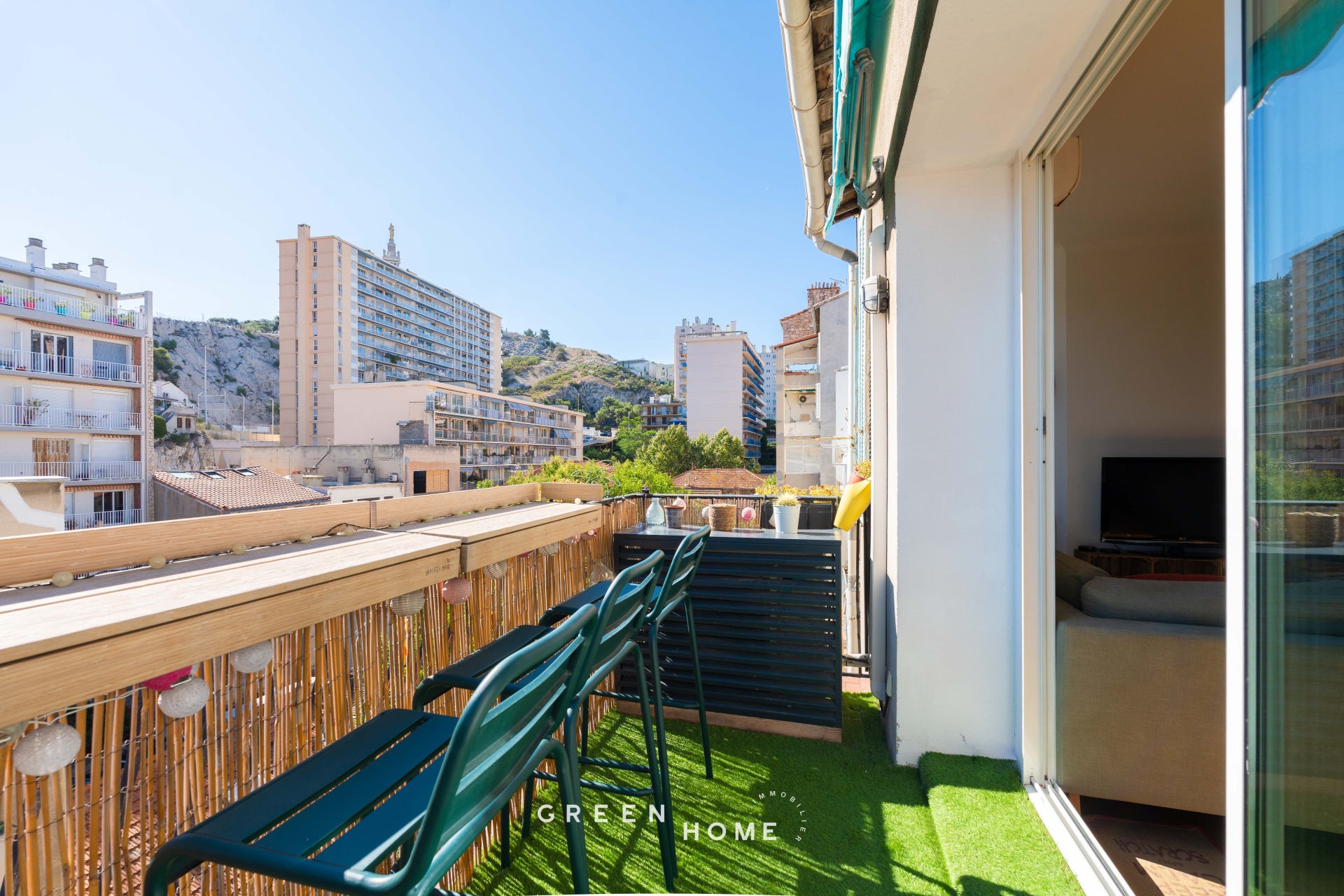 Le Boulevard Tellene abrite cet espace au troisième et dernier étage d'un bel immeuble bien entretenu. Seul sur le pallier, il s'ouvre sur une grande pièce de vie donnant sur une terrasse à la vue dégagée sur Notre Dame de la Garde. Rénové avec goût, la cuisine équipée, la déco et le parquet vitrifié insufflent de belles ondes. Traversant, le cachet conservé se prolonge vers les deux chambres bénéficiant d'un aperçu mer. Une possibilité de stationnement en face complète la description.