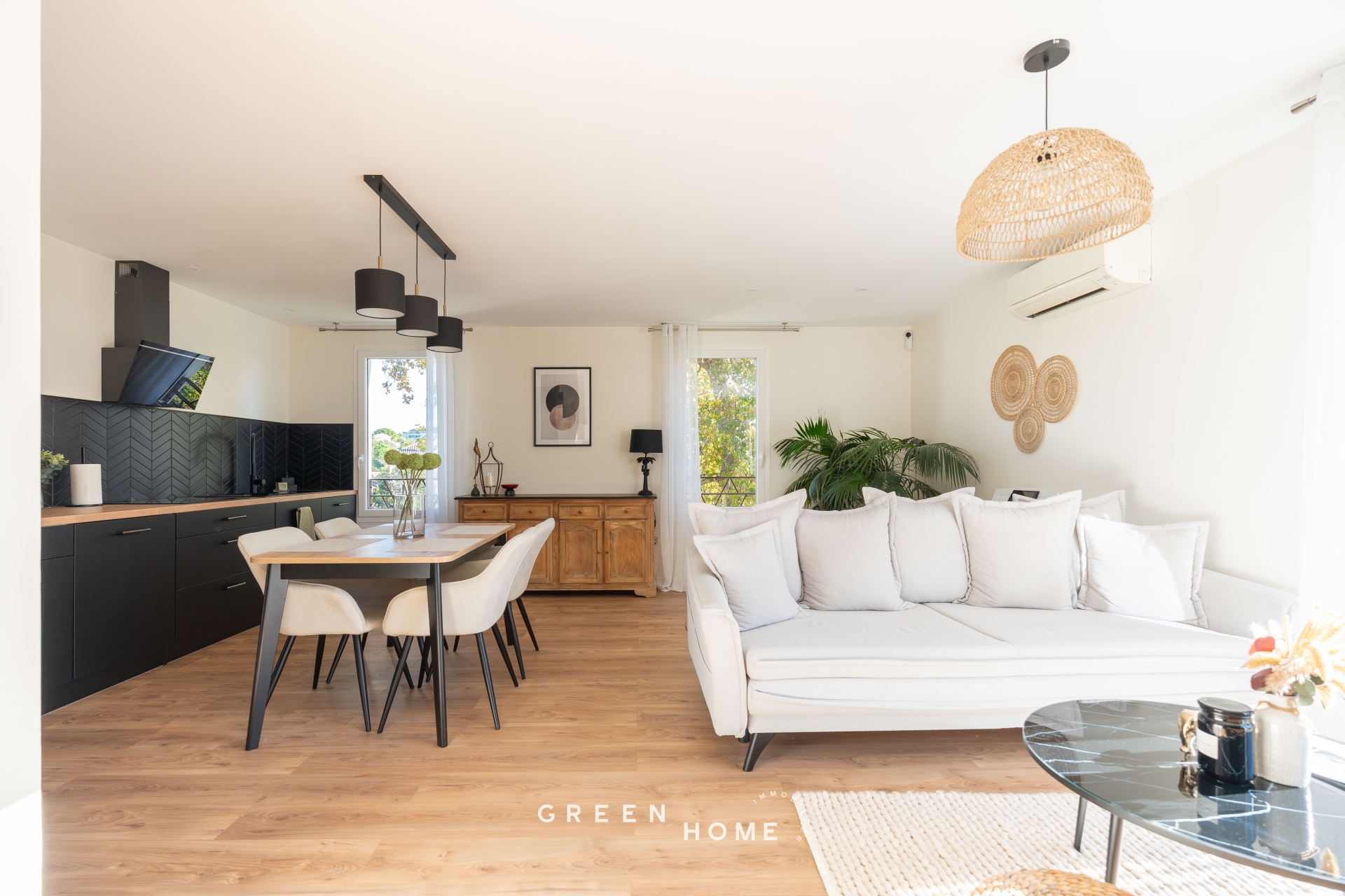Face au Château Ricard se dresse ce rooftop en dernier étage au milieu d'un espace arboré et au calme. La rareté de la terrasse de 51 m² est agrémentée d'une pergola, jacuzzi et coin repas. Doté d'une triple exposition, l'intérieur lumineux offre un espace de vie ouvert au ton doux et harmonieux. Au rebours, l'espace nuit est composé de trois chambres avec rangements et coin bureau. La qualité des matériaux et le soin donné à cette rénovation assurent un bien-être certain. Un garage double avec rangement complète la description.