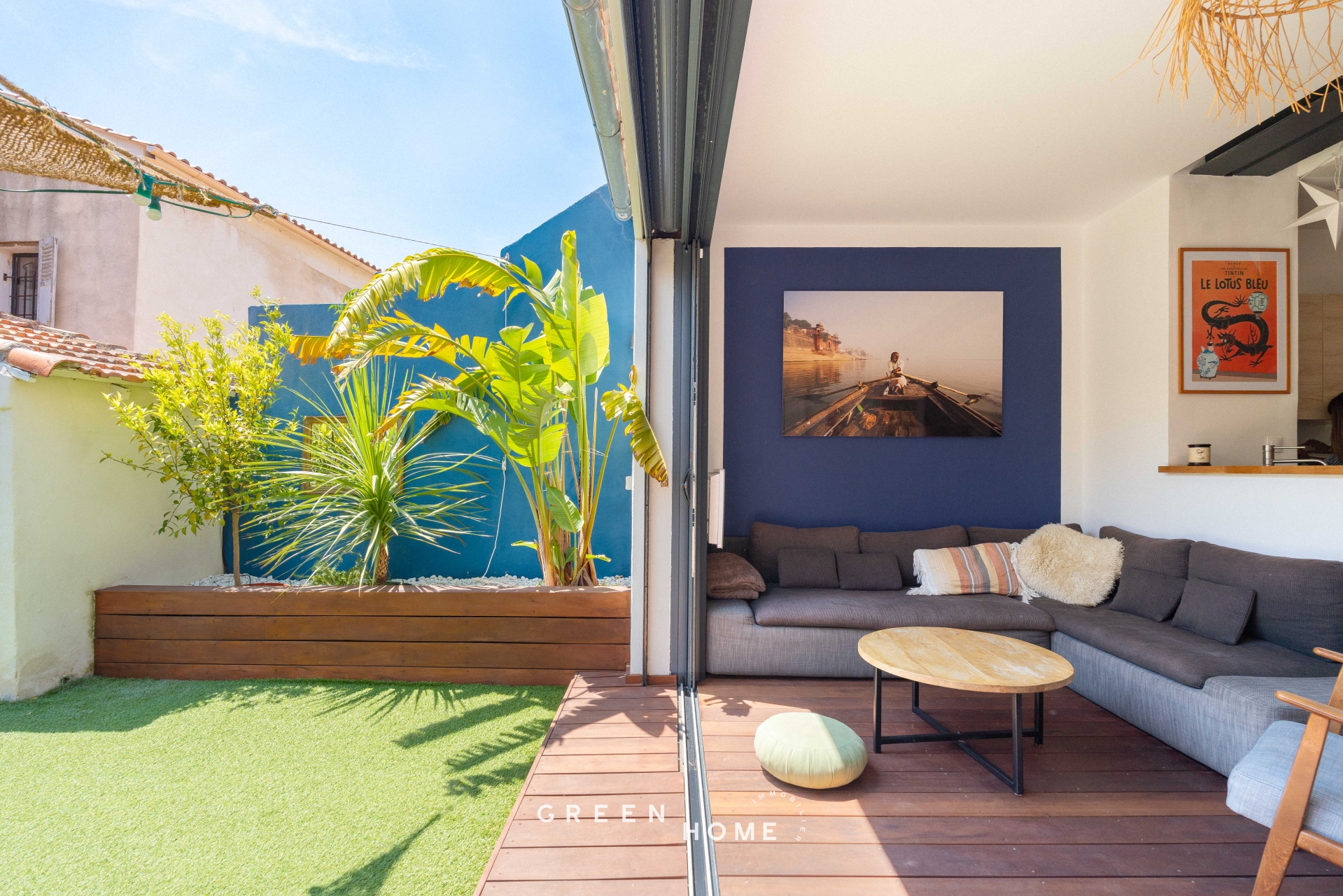 Située à quelques pas de la mer, cette maison aux airs de beach house se trouve dans le quartier d’ Endoume - Malmousque. L’entrée par le jardin dévoile une petite piscine et un cabanon utilisé comme espace de rangement et buanderie. Au rez-de-chaussée, le salon se vit autant dedans que dehors grâce aux baies à galandage. Le premier niveau accueille une chambre parentale, une salle de bain et une chambre en duplex avec une salle d’eau. Au second niveau, deux chambres communicantes sous pente en font un coin parfait pour les enfants. Cette maison de ville est idéale pour une famille ou un couple en quête de confort et d’une jolie vie de quartier.