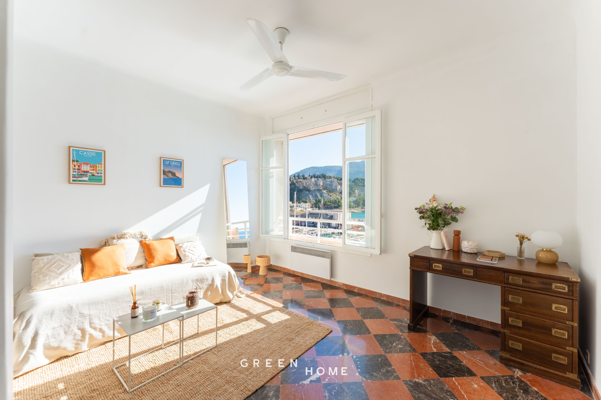 En 1ère ligne sur le port de Cassis, tout étant à l’abri de son bruit, de ses nuisances et des regards, découvrez cet espace offrant une vue imprenable, époustouflante, à 180 degrés sur le charmant village de Cassis avec son port animé, le château médiéval perché sur son nid d’aigle, le majestueux Cap Canaille rougeoyant au couchant, le phare regardant tour à tour le ballet des bateaux et l’infiniment bleuté de la Mer se mariant au Soleil. Une immense palette pour des tableaux uniques que la nature n’aura de cesse de varier et de peindre sous vos yeux, au rythme des heures, du jour et de la nuit, des saisons. Ces panoramas saisissants, alliant terre et mer, créent une atmosphère unique, inégalée. En ce lieu, est un cadre de vie exceptionnel et très recherché. Situé dans une copropriété intimiste, parfaitement entretenue avec de faibles charges, cet appartement traversant se distingue par un subtil mélange entre modernité et authenticité. Les volumes généreux avec une hauteur sous-plafond d’environ 3 mètres, l’agencement optimisé, une très grande luminosité, ainsi que divers équipements de qualité, apportent calme, confort, et bien-être au quotidien. Grâce à son emplacement privilégié sur le port, le tout à pieds devient une évidence, un immense plaisir: la « criée »du matin au retour des bateaux de pêche, les commerces, les boutiques, le marché coloré, les restaurants et la plage sont à portée de votre regard et de vos pieds. Un lieu de vie idéal pour les amoureux de Cassis et de la mer qui souhaitent conjuguer beauté, charme, confort et authenticité dans un cadre exceptionnel pour une qualité de vie inégalable. Un ou deux garages, au rez-de-chaussée de l’immeuble, les seuls existants pour toute la copropriété, peuvent compléter en SUS, le caractère exceptionnel de ce bien. Une merveilleuse surprise vous attend à ciel ouvert lors de la visite, une grande terrasse commune a l'immeuble sur le toit donnant une sensation d'être directement sur le port. Honoraires à la charge de l'acquéreur.